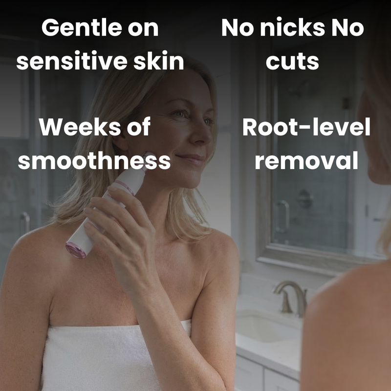 "I've struggled with sensitive skin and razor burn for years. Every time I shaved, I'd get those painful red bumps that would last for days. After just 4 weeks with Mellenza, I noticed my hair growing back slower and finer. Now at 12 weeks, my underarms are completely smooth and I haven't touched a razor in months. No more irritation, no more hiding. I feel like a new woman."
